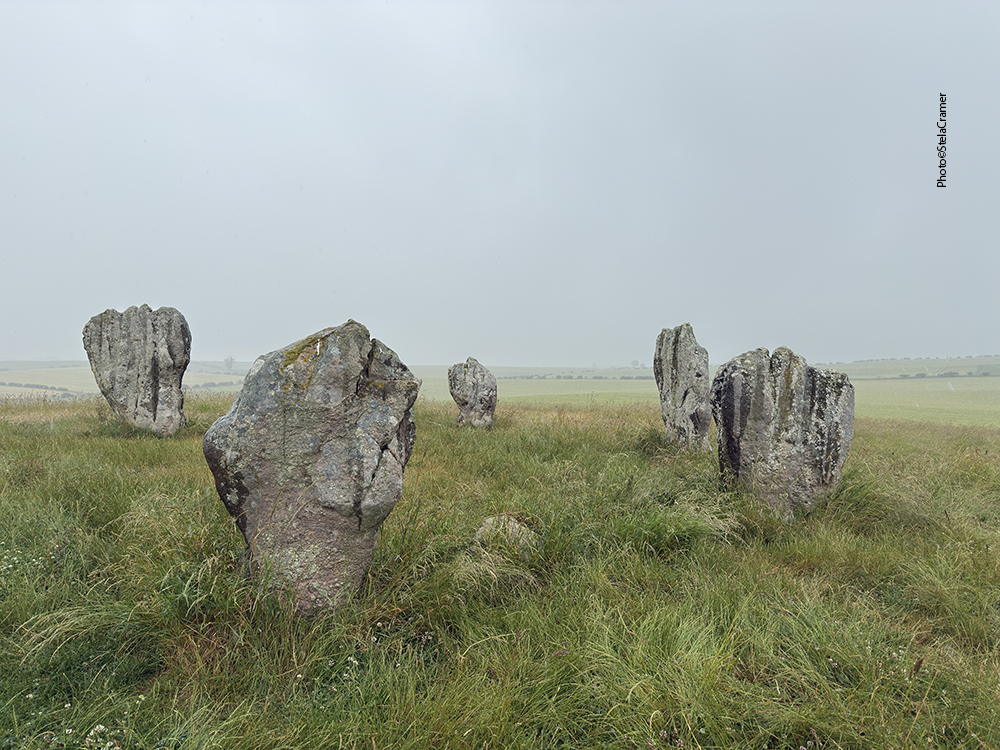 Um quilômetro depois, quando encontrei a placa apontando para a trilha que leva às pedras, já estava inteiramente encharcada. A chuva sempre acha um jeito de entrar dentro da roupa e dos sapatos. A princípio você nem vê as pedras; aliás não dava para ver quase nada com a névoa além da chuva, apenas trigo plantado de ambos os lados da trilha, e lama. Mais um quilômetro adiante minhas meias já tinham virado esponjas, fazendo aquele barulhinho shlop shlop nas poças que se formaram dentro dos sapatos. Mas por fim, depois de uma ligeira curva, a silhueta das pedras surgiu no horizonte. Bem longe. Segui feliz cantando It’s Raining Again, do Supertramp.