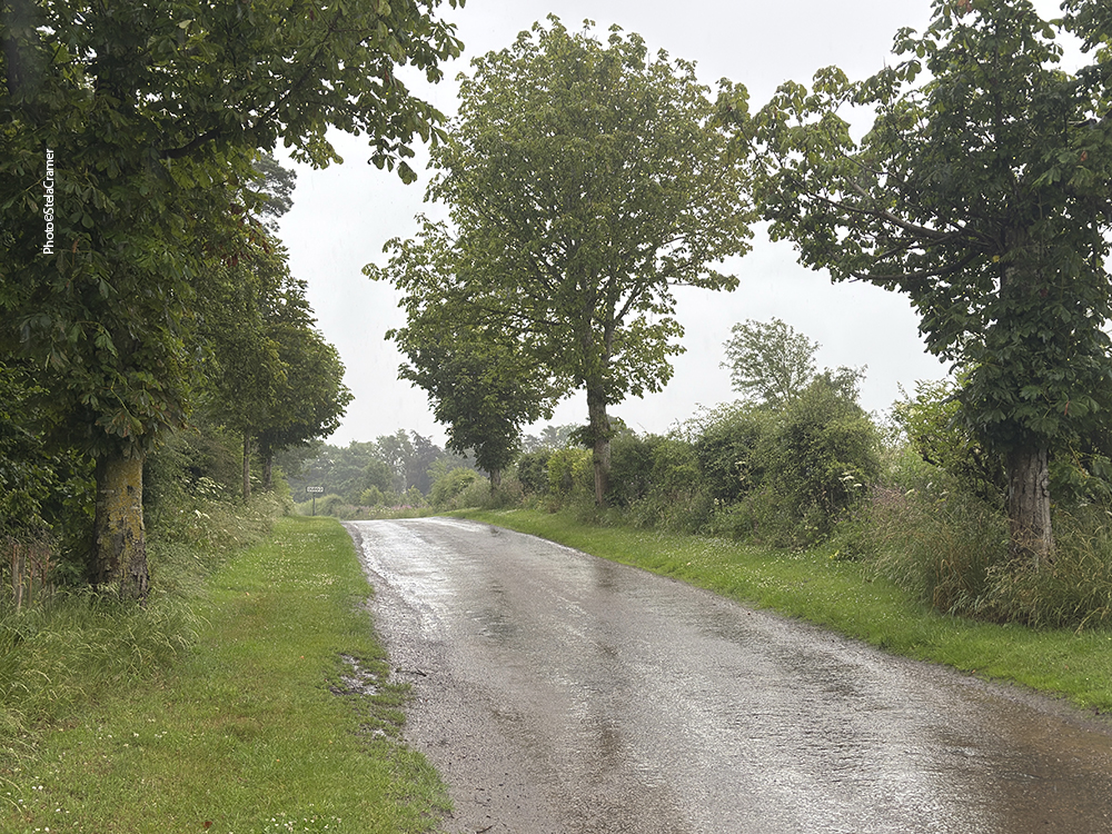 The driver was a young lady . Actually, in this latest trip I had noticed that a high percentual of bus drivers were young ladies, contrasting to former years when the drivers were always senior men. So, they are probably retired now. Anyway, she let me know where I was supposed to get off and pointed the road to the Stones footpath. The return bus would stop at the same place; there was one scheduled for half past five and another around 7 p.m. So I wrapped my backpack with the rain cover, put my hood on and got off. By now, hard rain was pouring down.