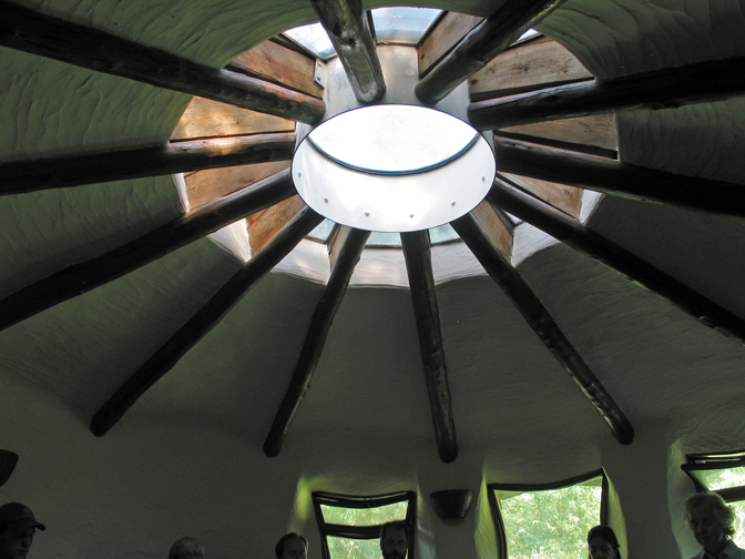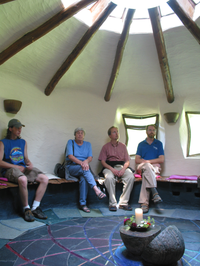 O grupo de brasileiros me mantinha informada sobre acontecimentos e atividades. Haveria um tour guiado pela Fundação incluindo a estação de tratamento ecológico de esgoto chamado Living Machine (Máquina Viva) cuja tecnologia me interessara conhecer. Me inscrevi e paguei as duas libras cobradas pela visita. Após percorrer diversas salas de atividades e meditação, inclusive o Santuário da Natureza, chegamos ao enorme galpão. A Máquina Viva reproduz em escala intensiva o processo de depuração que ocorre normalmente na natureza. Consiste numa sequência de tanques, onde desemboca o encanamento do esgoto. Em cada tanque há um ecossistema diferente composto por bactérias, algas, micro organismos, plantas, caracóis e peixes que se alimentam da sujeira,quebrando suas moléculas . A água que resulta desse processo, depois de passar por todos os tanques, está limpa (embora não potável) podendo ser devolvida ao mar ou reutilizada para regar plantas, lavar roupa e diversas outras finalidades. Não são utilizados produtos químicos e o custo é relativamente baixo. Sensacional!