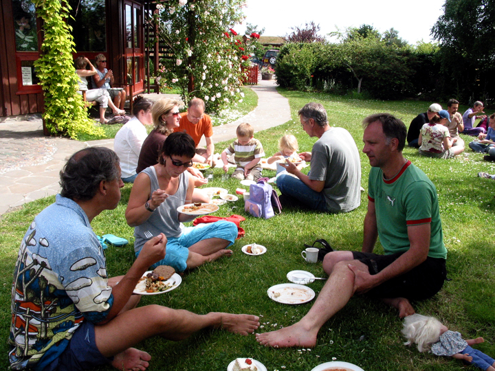 2005, July the 9th I volunteered to work in the kitchen. It felt so good to peel onions and peas, handle knives and pots, I was missing cooking, and for the work I was given (delicious!) lunch. Next day I would have to pay for my meal, but I entered the common room almost at closing time, just to talk to the other brazilians. However, nobody was there collecting lunch vouchers anymore. People were quite finished and there was still plenty of food on the buffet. Starving, I fixed myself a plate, sat down, ate and fortunately no one appeared to make any fuss about it.