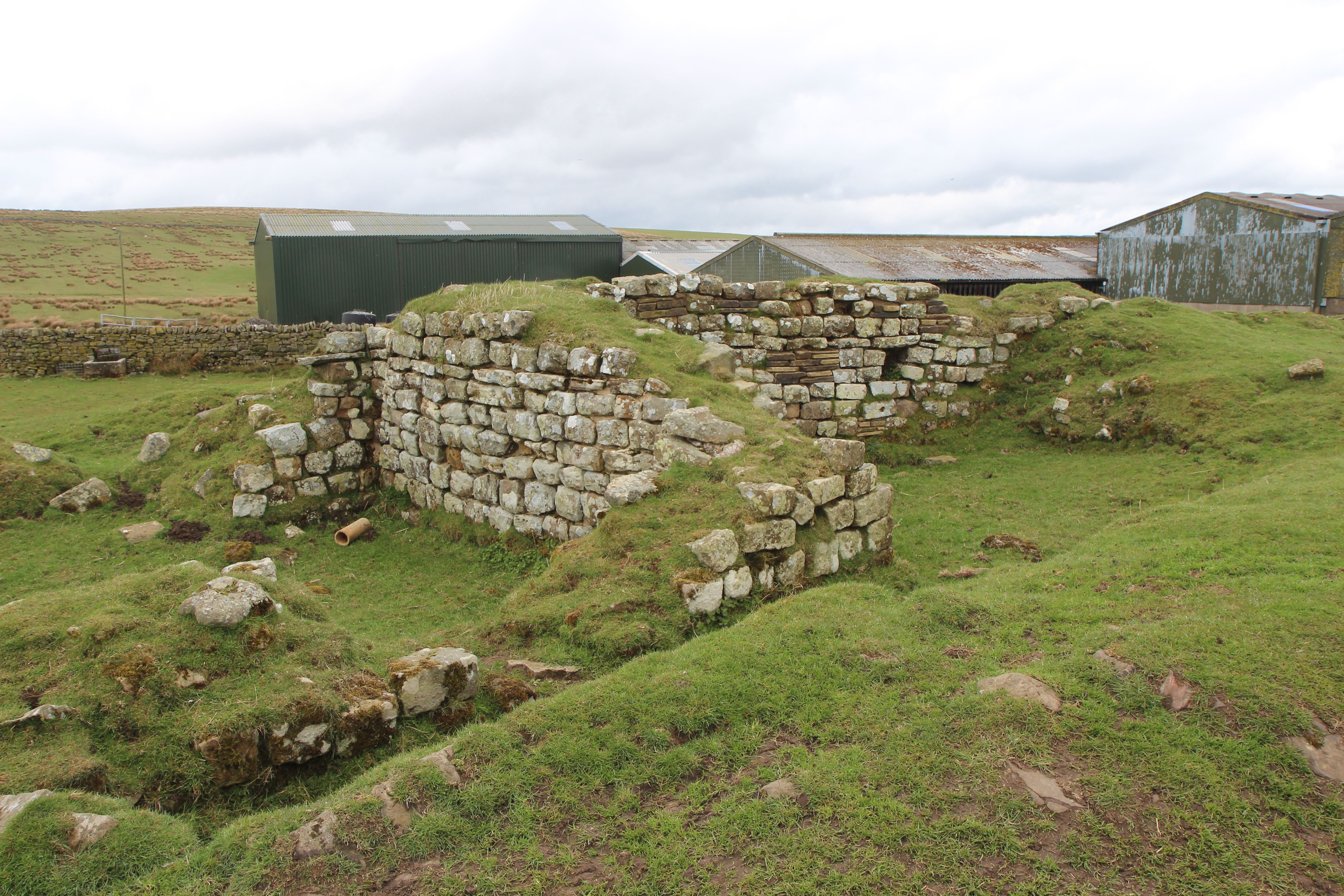 Aesica Fort remains, lost between farmyards.