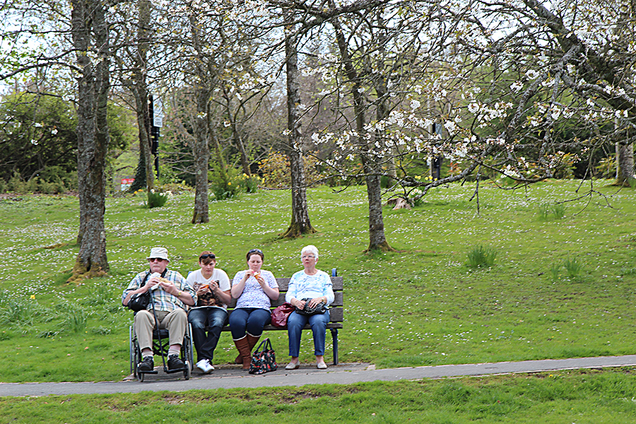 Mrs. Donnelly estava com uma forte gripe; apesar disso passou o dia todo dirigindo para me mostrar a impressionante paisagem. Paramos primeiro no círculo de pedras de Castlerigg, depois em Keswick para tomar chá e caminhar em volta do lago. A parada seguinte foi Windermere, para outra xícara de chá, e continuamos rodando até quatro da tarde, quando ela por fim me deixou na estação de Oxenholme, onde ainda tomamos mais um chá. Não tenho palavras suficientes para agradecer o dia tão agradável. O tempo estava esplêndido, aprendi bastante coisa e tirei boas fotos. Mrs. Donnelly não aceitou nem um centavo pelo tour, nem mesmo para a gasolina. Não sei foi porque se simpatizou comigo, ou apenas estava feliz por mostrar sua terra a alguém. Talvez as duas coisas. Seja como for, minha gratidão é enorme. Espero poder retribuir um dia.