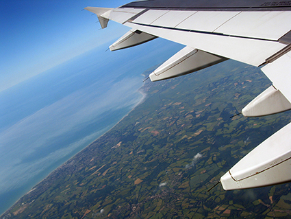 When the plane crossed the English Channel and started to overfly England my iPod started to play Like a Hurricane, by Neil Young. I only resisted breaking into tears for the sake of the guys sitting by my side. They had kindly exchanged seats to give me the window, so they had to get up everytime I went to the toilet or decided to pick up stuff in the luggage compartment. The last time I bumped into the table and spilled a glass of water in the nearest one’s lap. I was so sorry! Fortunately it was only water, and they were polite enough to smile back, but after that both pretended to be asleep the rest of the flight.