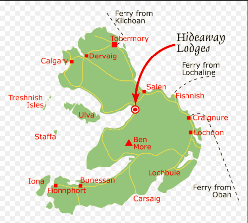 Mapa da Ilha. De Fionnphort a Craignure são mais de 70 km. / 35 miles from Fionnphort to Craignure.