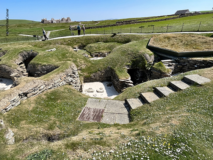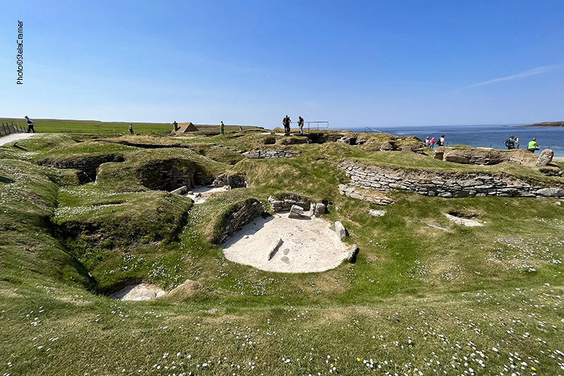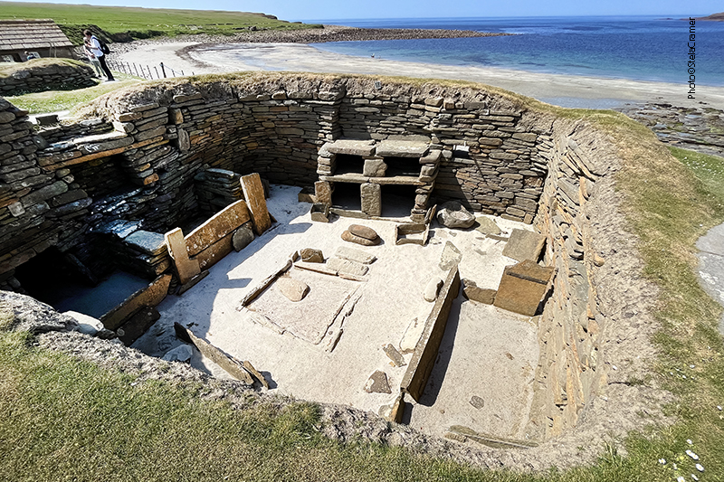 A aldeia Neolítica de Skara Brae foi descoberta no inverno de 1850 quando uma tempestade carregou a grama e areia de dunas junto à Baía de Skaill, expondo as ruínas de construções de pedra. Skara Brae é considerada, até os dias de hoje, a mais bem preservada aldeia Neolítica no Norte da Europa – não apenas pela antiguidade, mas especialmente pelo grau de preservação. As estruturas das casas e o mobiliário, enterrados na areia, se mantiveram em condições impressionantes. Em nenhum outro lugar no norte da Europa foi encontrado testemunho tão rico da vida desses povos ancestrais.