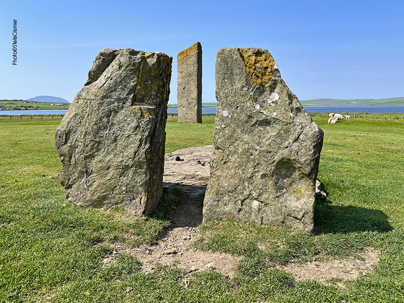 Análise geológica dos monolitos revelou que cinco diferentes tipos de pedras foram utilizadas. Esta descoberta reforça a teoria de que, assim como em Brodgar, as pedras foram trazidas de diferentes lugares, provavelmente significativos, para a construção do monumento. A construção de um círculo de pedras envolvia considerável esforço da comunidade, envolvendo atividades “especializadas” como planejamento, extração das pedras, transporte, construção de fundações e a construção final. Os círculos mais antigos no Reino Unido – Stenness e Callanish (este na Ilha de Lewis) – foram construídos alinhados com a posição do Sol e da Lua. Mas não há consenso entre os arqueólogos quanto à sua função. Poderiam ter sido locais cerimoniais, rituais, sociais, mortuários, para reuniões comunitárias…ninguém sabe ao certo. Eu acrescentaria pontos de comércio a essa lista de possibilidades.