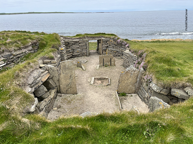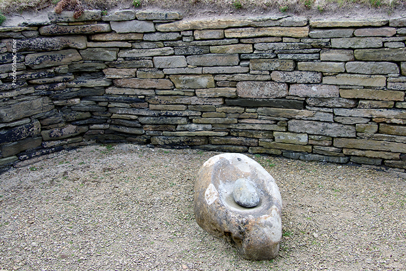 This Neolithic site was was discovered and first excavated by archaeologist Colin Richard in 1984 and is often overlooked, but it’s only a little more than one hundred metres away from the Stenness stone circle. Thousands of years ago it would have been a small group of homes, some similar to Skara Brae, with their own hearths, box beds, internal drains and stone furniture. The objects found in there (pottery of the grooved ware, flint and stone tools) are similar as well.