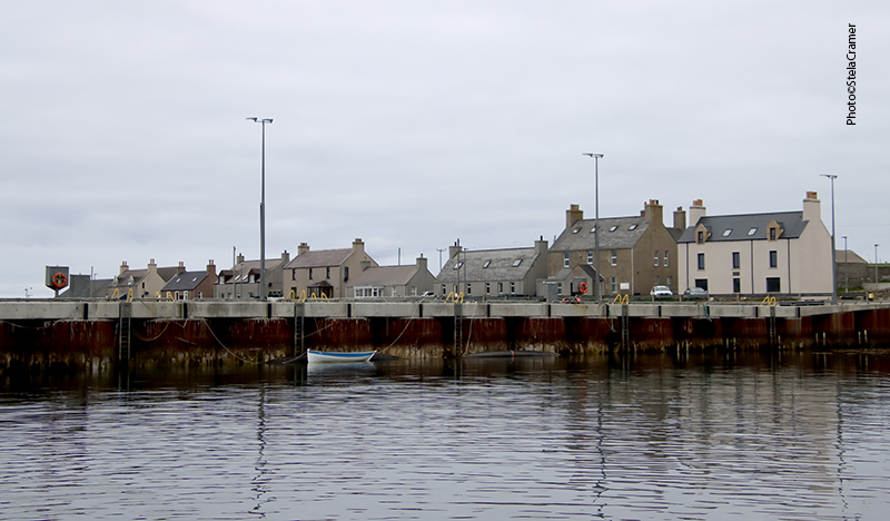 O Pierowall é o único hotel da cidade, chamada Pierowall, talvez a única cidade na ilha de Westray, que possui 600 habitantes. Todo mundo na verdade é vizinho. A economia local é baseada na pesca, fazendas de peixe e gado, assim como turismo. Jonathan, o “Papay Ranger”, é o guia que leva visitantes a Papay (apelido de Papa Westray, a ilhota que possui cerca de 90 habitantes). Eu tinha reservado o passeio dois meses antes. Assim, dia 6 de junho, conforme combinado, o encontrei na rampa do ferryboat que também liga as duas ilhas. A travessia leva 25 minutos, mais uns 15 de van, até Knap of Howar.