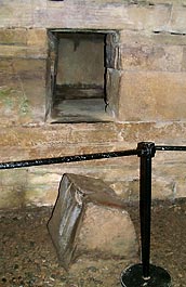 A entrada, visível na foto, é uma passagem de apenas 90 cm de altura, obrigando os visitantes a se curvar ou mesmo engatinhar até a câmara central. / The entrance passage, as you see in the photo, is only about 3 feet (0.91 m) high, requiring visitors to stoop or crawl into the central chamber.