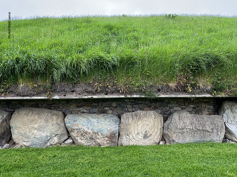 Chambered tombs of the Maeshowe “type” are characterized by a long, low entrance passageway leading to a square or rectangular chamber from which there is access to a number of side cells. It’s called a “passage grave”, just like Newgrange (in Ireland) that will be shown here next. Alignment with aspects of the winter or summer solstice is a typical feature of such buildings.But no evidence of human remains had been found at this site! Archaeologists suggest that it was used as an observatory, calendar, and for ceremonies rather than as a tomb…we will never know for sure.