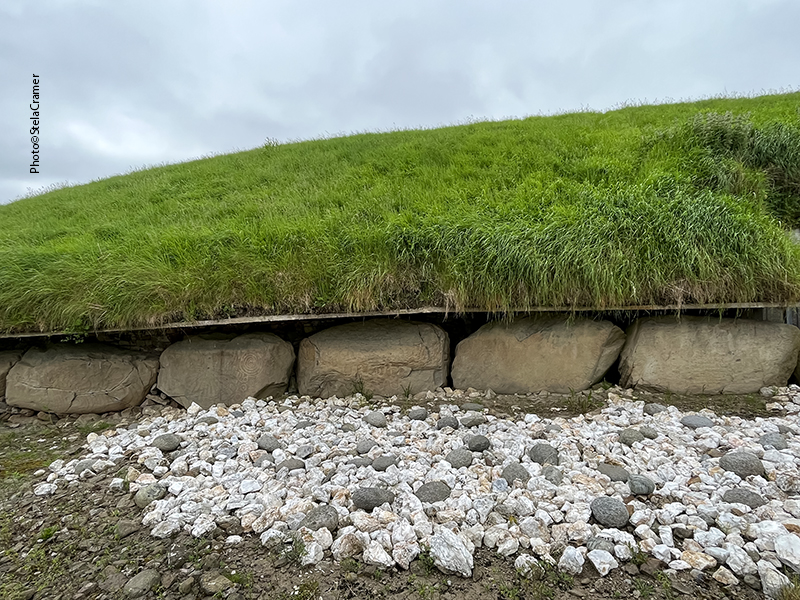 Newgrange é o principal monumento do complexo Brú na Boinne, declarado pela UNESCO Patrimônio Mundial. Construído durante o Neolítico, por volta de 3200 A.C. – mais antigo que Stonehenge e as Pirâmides do Egito – está alinhado ao nascer do sol no Solstício de Inverno. / Newgrange is the main monument in the Brú na Bóinne complex, a UNESCO World Heritage Site. Built during the Neolithic Period, around 3200 BC- older than Stonehenge and the Egyptian pyramids – it is aligned on the winter solstice sunrise.