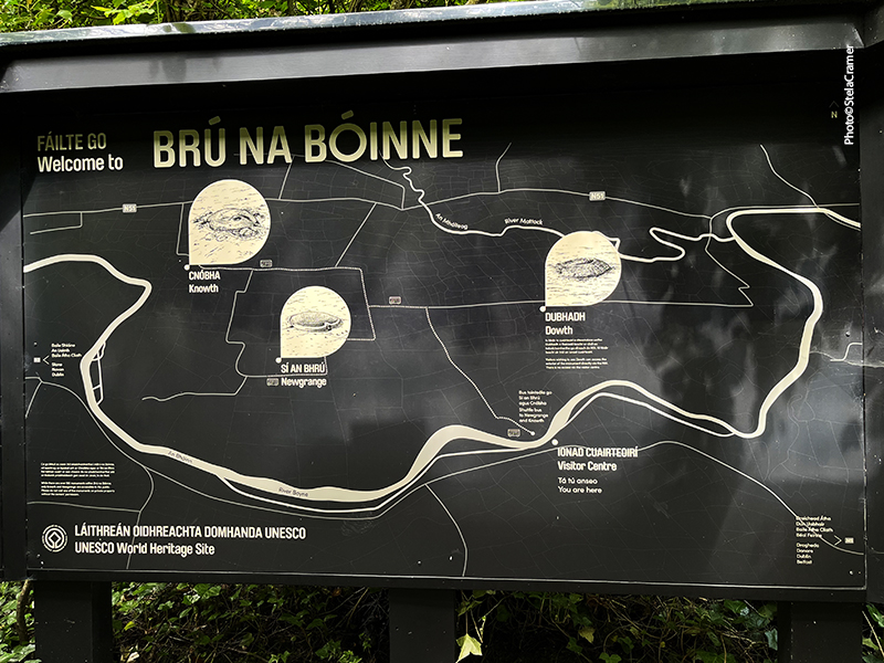 Mapa do local. Dowth é outra Tumba de Passagem próxima, de visitação livre, com acesso pela estrada N51/ Area map. Dowth Passage Tomb nearby has free access from the N51 road.