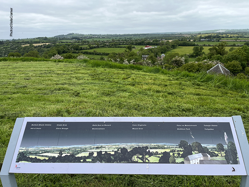 Hill of Slane, indicado à direita, fica a 15 minutos de caminhada do hotel onde me hospedei Hill of Slane, at the right end, was a short walk uphill from my hotel