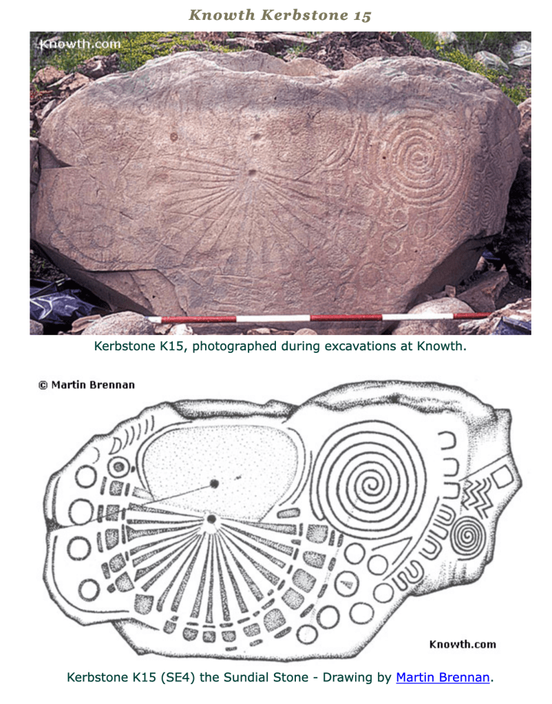 A pedra do Relógio de Sol (Kerbstone K15), que aparece no estudo abaixo feito durante a escavação Kerbstone K15, the Sundial Stone, depicted below during the excavation