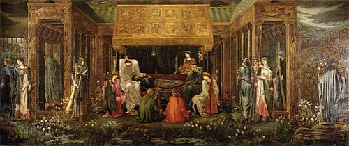 O repouso final de Arthur em Avalon (279 cm × 650 cm) , por Edward Burne-Jones. O pintor iniciou este trabalho em 1841 e levou a vida toda para terminá-lo. / The Last Sleep of Arthur in Avalon (279 cm × 650 cm), by Edward Burne-Jones. Started in 1881, it took the painter’s lifetime to finish.