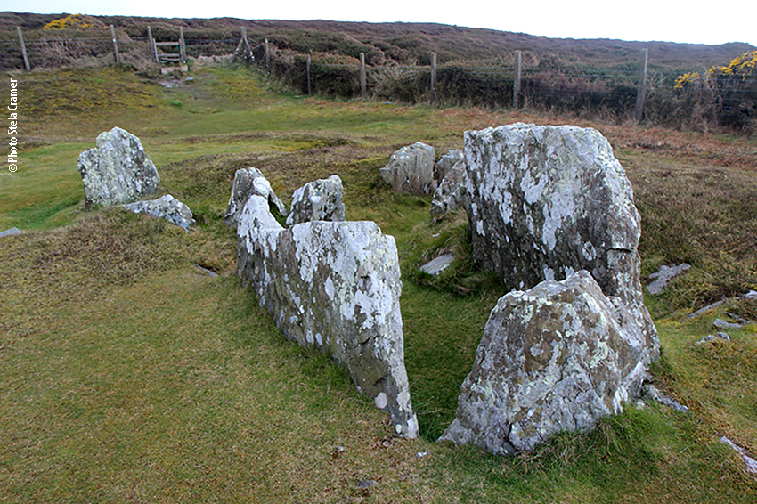 De volta à estrada, nos dirigimos a um círculo de pedras próximo, dispostas a visitá-lo ainda que debaixo de chuva. Meayll Stone Circle, também chamado de Mull Circle, é uma câmara funerária composta por megalitos dispostos num círculo de 18 metros, com seis pares de túmulos datados do final do Neolítico ou início da Idade do Bronze.