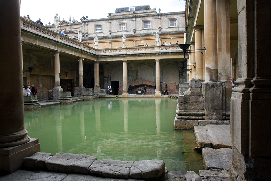 O primeiro santuário no local das fontes de água quente foi construído pelos Celtas. A água que brota do solo em Bath caiu sob forma de chuva nas colinas Mendip próximas. Ela se infiltra através de aquíferos de calcário a uma profundidade entre 2.700 e 4.300 metros, onde energia geotermal eleva a temperatura da água para algo entre 64 e 96ºC. Sob pressão, a água aquecida sobe à superfície através de fissuras e falhas no calcário.