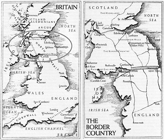 “Historians still tell us that K.A. successfully defended all Britain from invasion by the sea. They had it on excellent authority that he halted the Saxon invaders for a considerable period of time and won all his engagements except the last one, in which he was fatally wounded. Very few scholars still insist that he fought in Cornwall or that he was born there, for the simple reason that the Saxons were NOT invading Cornwall during Arthur’s lifetime. Historians of the Anglo-Saxons say that Arthur could not have won his battles in England, because they know from the several manuscripts of the Anglo-Saxon Chronicles that the Saxons conquered England in King Arthur’s lifetime. We will think of Arthur as not in those territories which he could not have conquered but in those which the Saxons failed to overrun. By the time of Arthur’s birth, when the Roman troops had finally withdrawn completely and left the island without governors, certain large areas of Britain still spoke only Celtic tongues. The largest of these properly Celtic populations still resides in the area called Strathclyde, a border area between the Hadrianic and Antonine Walls, the only large area unconquered by the Anglo-Saxons.”
