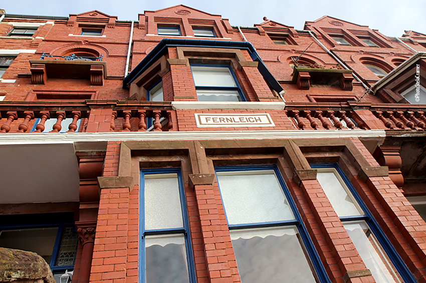 The older buildings of Peel were built of reddish Peel Sandstone. The Fernleigh is the penultimate building to the left, and our room was on the third floor, facing the sea… and the Castle!