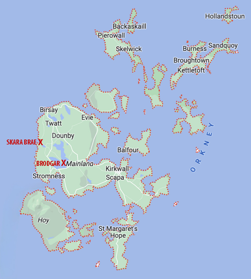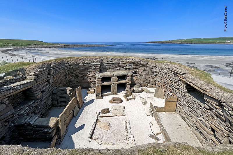 A aldeia Neolítica de Skara Brae foi descoberta no inverno de 1850 quando uma tempestade carregou a grama e areia de dunas junto à Baía de Skaill, expondo as ruínas de construções de pedra. Skara Brae é considerada, até os dias de hoje, a mais bem preservada aldeia Neolítica no Norte da Europa – não apenas pela antiguidade, mas especialmente pelo grau de preservação. As estruturas das casas e o mobiliário, enterrados na areia, se mantiveram em condições impressionantes. Em nenhum outro lugar no norte da Europa foi encontrado testemunho tão rico da vida desses povos ancestrais.