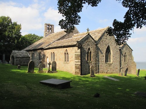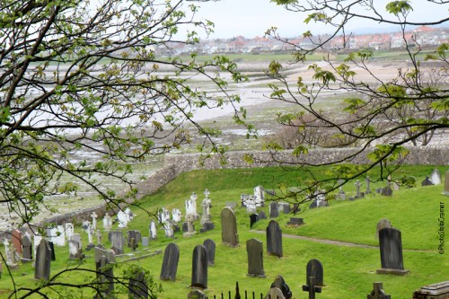 Estávamos em Heysham unicamente para pegar o ferryboat para a Ilha de Man. Nem sabíamos que essa cidade existia até pesquisar transporte para Man. Entretanto o lugar se revelou uma magnífica surpresa! Após almoçar, andando na direção do mar pela rua principal, resolvemos visitar a Igrejinha de St. Peter. Uma pena que estava envolta em plásticos e andaimes, em restauração, tanto que não pude bater nenhuma foto. Existe uma cruz Anglo-Saxã, mas estava dentro da área cercada em obras. Apenas parte do cemitério podia ser visitado. Além dos lindos túmulos antigos encontramos uma passagem, um caminho entre antigas ruínas romanas, subimos alguns degraus e de repente estávamos de frente para o mar e para a Capela de St. Patrick! Um lugar alucinante.