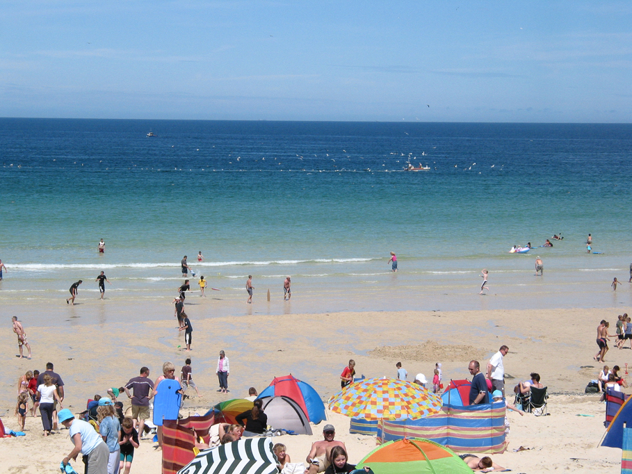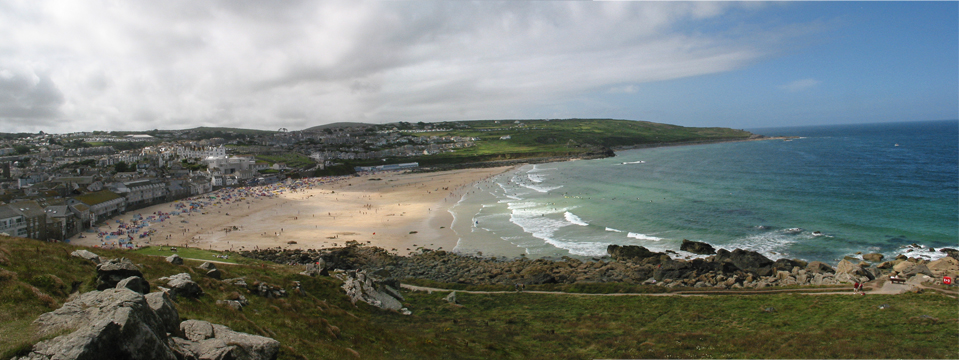 Vista de Porthmeor Beach, onde fica a Tate Modern (foto abaixo)/Porthmeor Beach landscape, with Tate Modern Gallery (below)