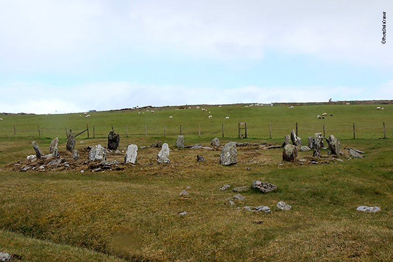 The Broch of Gurness is around 2000-years-old. Built by Neolithic people, at some point after 100 AD the broch was apparently abandoned and the ditches filled in. The settlement around it continued into the 5th century AD, the period known as Pictish times. Subsequently, Viking buildings occupied part of the site. This same sequence of occupation is seen in the nearby Brochs, Birsay and Midhowe, this last one in Rousay, the island seen in the background, in the picture above. There must have been connection between all these inhabitants. I guess that centuries ago the sea level was lower and people could cross on foot in the ebb.