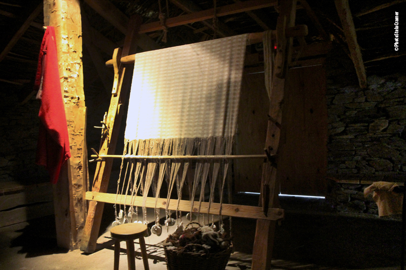 In the village, each house entrance leads to a large living and sleeping room, off which were smaller side rooms. The main room had a hearth, a large tank set into the floor, cupboards and sleeping spaces divided by stone slabs.