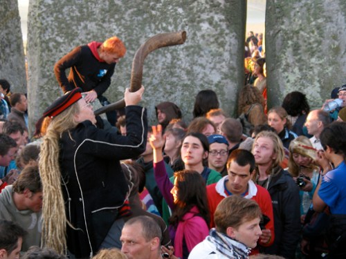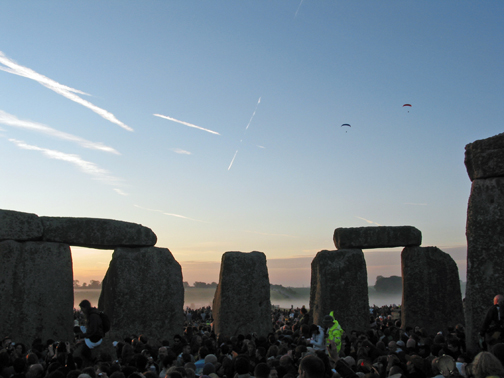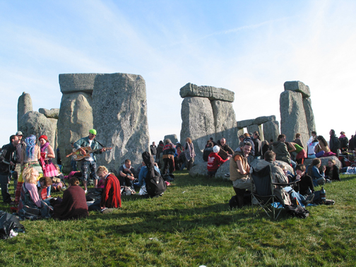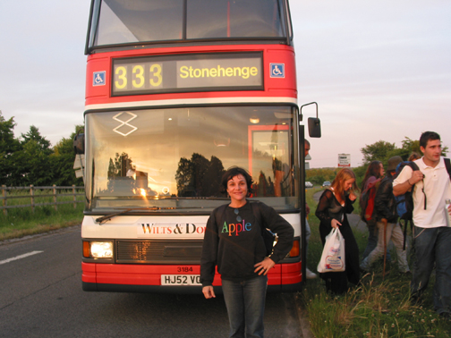 Na manhã seguinte, ele já havia combinado com um amigo para nos levar de carro a uma estação chamada Shepton Mallet (entre nada e lugar nenhum) onde passava o trem para Salisbury, de onde sai o transporte para Stonehenge na véspera do Solstício. O amigo comprometeu-se a nos buscar no dia seguinte, no mesmo local. O ônibus para o Solstício fora gratuito cinco anos antes. Agora, custava oito libras para ida e volta!Um terrível baque nas nossas finanças, pois teríamos que comer e pegar o trem de volta. Mas pensaríamos nisso mais tarde.