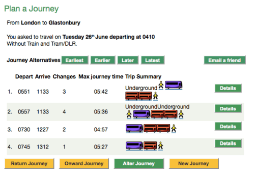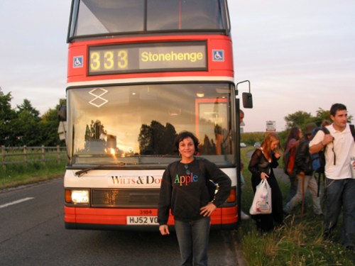 Next morning, a friend of his appeared , as they had arranged, to drive us to Shepton Mallet station, in the middle of nowhere, to take the train to Salisbury, from where we were supposed to take the bus to Summer Solstice. The guy promised to pick us up back there the next day. Five years ago, the bus had been free. Now it costed 8 pounds, return included. That was a terrible blow to our finances: we had to eat and pay the train back! But for the moment we just let it be. We’d deal with that later.